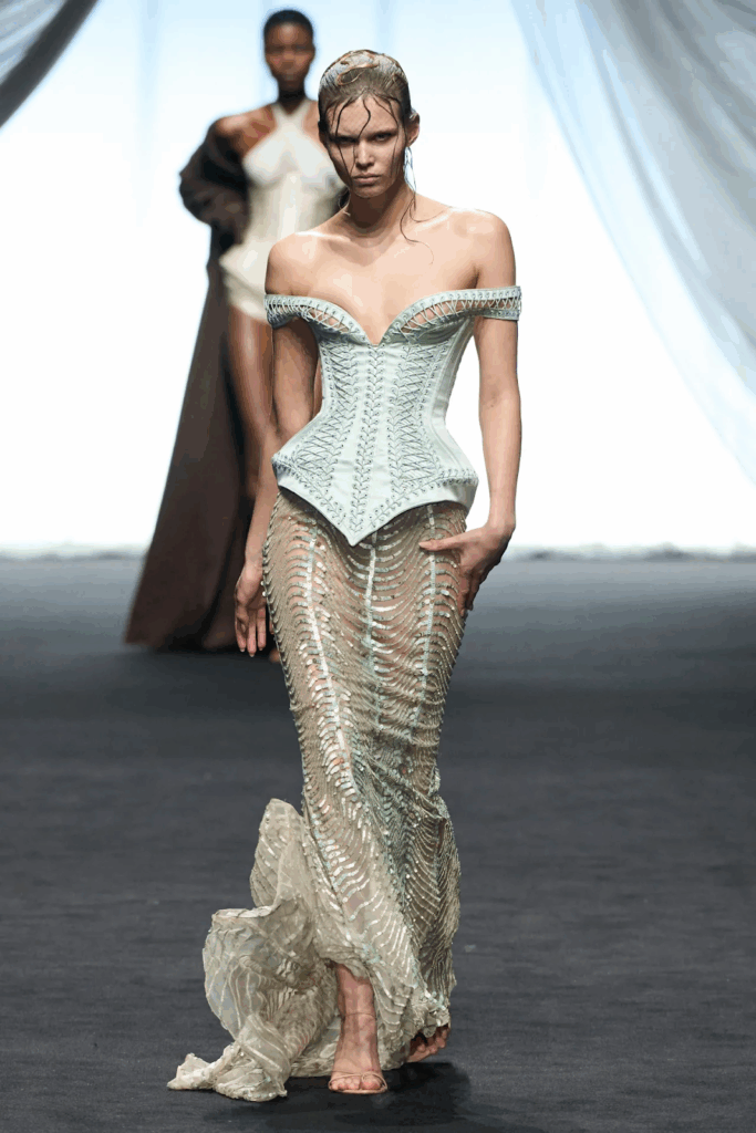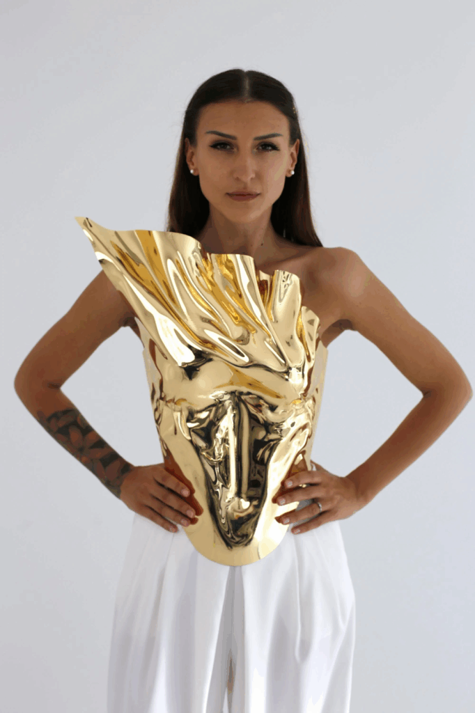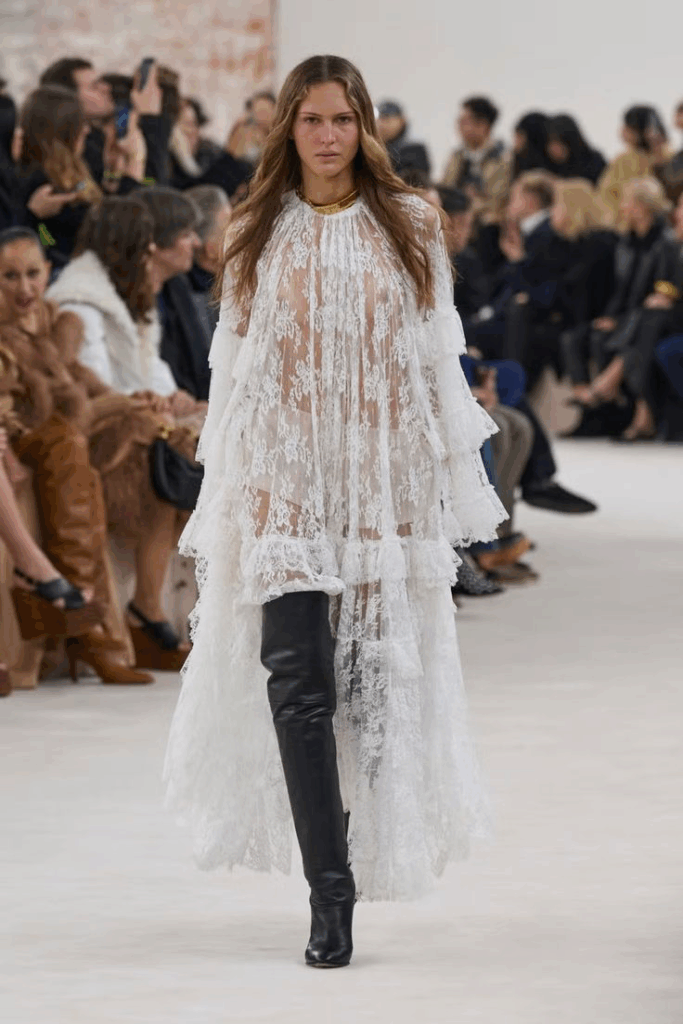 As mentioned, Castle Core is currently on the rise in terms of its proliferation in mainstream fashion. However, it has already begun to emerge online, in high fashion, and in many creative projects. For example, many TikTok users have taken to creating gold acrylic corsets that mimic busts for every number of occasions. Similarly, Paris Fashion Week saw a number of wonderfully medieval looks. Known for its dramatic and form-hugging pieces, French haute couture and ready-to-wear fashion house Jean Paul Gaultier combined the bold lace-up details in corsets with flowy, tiered skirts, and simple sandals with modern fabrics and textures. Meanwhile, airing on the more feminine and “light” side of Castle Core, Chloé played into looser silhouettes, such as puff sleeves, high collars, empire waistlines, and transparent fabrics like lace.