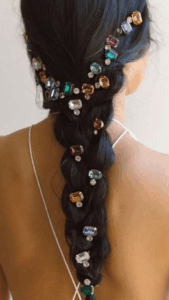 Castle Core is a style of dress which hinges on a number of fashion motifs across time. It takes elements from recent style classifications, namely whimsy goth, coquette, and cottage cores. In particular, it respectively takes the flowy silhouettes, jewel-toned colour palette, and airy fabrics from whimsy goth, the hyper-feminine details that are characteristically “coquette” (like ribbons, lace, and ballet flats), and the muted floral patterns from cottage core. Such an aesthetic also extends into accessories and even home décor, similarly blending the dark/gothic and feminine. Historically speaking, the aesthetic is greatly inspired by both medieval times and the Renaissance. Specifically, it uses several Christian and Catholic motifs, namely the Cross and a lot of chainmail, reminiscent of Joan of Arc or a knight. These are combined with silhouettes characteristic of the period: long, flowy skirts with yoking, peasant blouses, and corsets. In terms of accessories, a heavy layering of predominantly silver jewelry, namely necklaces and rings, is paramount, as well as statement pieces like large, chunky bangles. For the hair, beaded headpieces and bejeweling one’s hair with every number of gems and similar accoutrements are also common. With this in mind, Castle Core thus blends the historically glamorous elements denoting wealth and society with modern trends which reimagine medieval motifs, albeit in contemporary ways.
