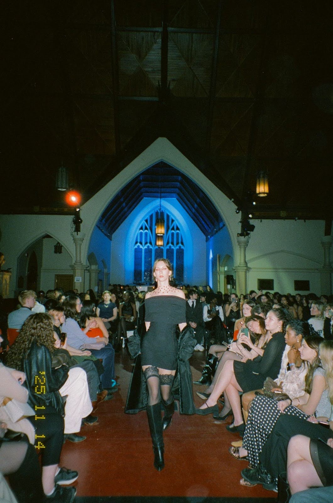 Walking into Centre Jax’s venue for the Fall Circle of Fashion runway show was like stepping into the theme of Ecliptica itself. The dark wood of the old church was lit with deep blue lights that cascaded to the ceiling, and the dim atmosphere created an allure perfect for the cosmic theme. Over 300 seats would later be filled that night, as models walked down the runway for the sold-out show.