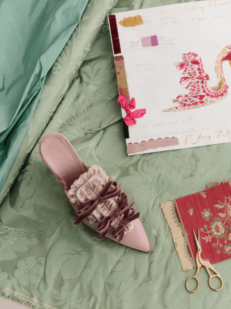 As the eve of the revolution approaches, Kirsten Dunst’s costumes in Sofia Coppola’s cult classic Marie Antoinette become heavier, stricter, and darker. The frills are forgone for firm and simple silhouettes, reflecting her turmoil from outside in. A similar development of depth is found in the colour palette of Manolo Blahnik’s new limited-edition Marie Antoinette collection as well.